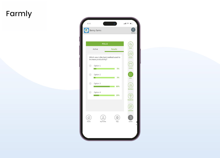 Farmly is an agri-social network for US based organic farmers who want to keep in touch with their consumers/members. The app is available on Android and iOS and allows the farmers to build a community of customers and engage them with – events, polls, messaging, harvests ,and sales.